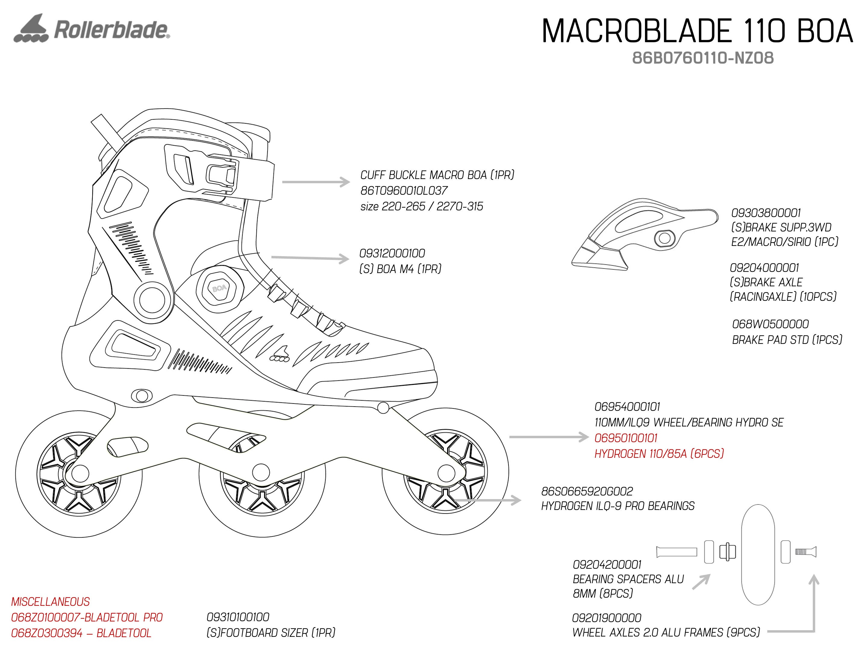 The Rollerblade Macroblade 110 BOA Men's Skates are built for skaters seeking speed without sacrificing comfort. The BOA® Fit System delivers a precise, easy-to adjust closure that stays secure through every session, while an upgraded Flyknit upper delivers a sock-like fit with enhanced breathability with a re-imagined cuff for improved comfort, support and control. Rollerblade's memory buckle system locks in your preferred fit and makes the skates quick and easy to put on. Removable Footboard Sizers allow you to fine-tune the interior fit of the Macroblade 110 skates; Keep them in for a snug, performance feel, or remove them for a roomier ride. Underfoot, Twincam ILQ-9 Classic Plus bearings paired with 110mm/85A Rollerblade Hydrogen SE Wheels deliver smooth roll, high speed and reduced friction. Stiff and responsive Twinblade Alu frames provide stability at high speeds, with upgraded hinge rivets that enhance energy transfer to maximize every stride.
