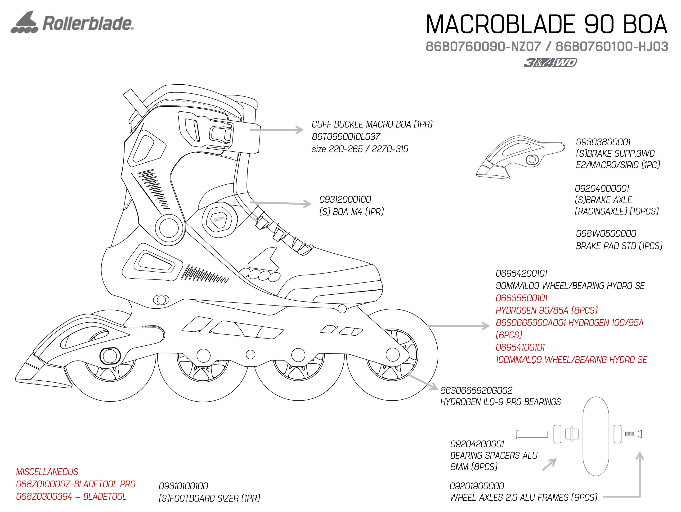 The Rollerblade Macroblade 90 Men's Skates bring elevated performance and increased speed for fitness skaters looking to step things up. The BOA® Fit System delivers a precise, easy-to adjust dial closure that stays secure through every session, while an updated engineered mesh upper and liner create a breathable, sock-like, while added padding in the tongue and ankle areas enhances comfort during longer sessions. High boot design improves stability and control through every stride, and Rollerblade's memory buckle locks in your preferred fit, allowing for quick and easy on and off.. Removable footbed sizers allow you to fine-tune the interior feel, offering a snug, performance fit when inserted or a roomier, more relaxed fit when removed. Durable 3&4WD Twinblade Aluminum frames keep the Macroblade 90 BOA skates close to the ground and responsive, and 90mm/85A Rollerblade Performance Wheels pair with low-friction Rollerblade SG9 bearings for superior spin, optimal speed, and a consistently smooth ride. Five axle holes on the frame allow you to switch from a 4x90mm wheel setup to a 3x100mm configuration, making them perfect for skaters seeking even more speed.